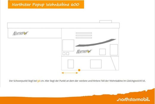 Da Bilder eingängiger sind, gibt es eine Zeichnung, beispielhaft für alle Wohnkabinen von Northstar: die Popup Kabine 600.